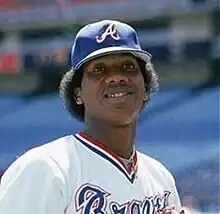 Slender at 6 feet 2 inches (1.88 m), 162 pounds (73 kg), he received extensive press coverage for both on-field and off-field controversies. He was arrested for cocaine possession in his native Dominican Republic in January 1984 and spent three months in prison although his ultimate sentence was only a fine of $1,000.[1] He did not rejoin the Braves until May 1984. He often drew the ire of his opponents, using an imaginary finger gun to shoot opponents and would pound the baseball into the ground. While it is customary for pitchers to walk back to the bench after completing an inning, he would run full speed to the dugout (gold chains and long, curly locks bouncing) after an inning-ending strikeout. He eventually added the "Pascual pitch" (his version of the "eephus") to his repertoire.[2] He was also involved in more than one beanball incident, most notably an August 12, 1984 brawl with the San Diego Padres where he hit the Padres' Alan Wiggins with his first pitch leading off the game, inciting each San Diego pitcher in the game to throw at him each time he came to bat. He had just received his driver's license and earned the nicknames "Perimeter Pascual" and "Wrong-Way Perez" after missing a start on August 19, 1982, while circling Atlanta's Interstate 285 (a beltway) three times looking for Atlanta–Fulton County Stadium, he ran out of gas and arrived at the ballpark 10 minutes late.[3]