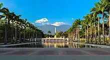 The Paseo Los ilustres (Boulevard of the Illustrious) is a large vehicular avenue with driveways and a pedestrian island in the middle, erected as a tribute to the illustrious children of the nation, is the point of exchange of civil and military population, in which is located the Armed Forces Club, the headquarters for social events of members of the military institution. On the other hand, the Paseo de los Símbolos (Boulevard of the Symbols) is defined by a sculptural set made in bronze, on a marble pedestal and a water mirror. Performed by Ernesto Maragall in 1957, it constitutes an allegory to the Venezuelan national symbols: the coat of arms, the flag and the national anthem. On the Paseo Los Precursores (Boulevard of the Precursors) there's a sculpture of a Native Venezuelan who stands on his horse, made of bronze, in the middle of a platform and marble base guarded by two lions, also by Maragall, honoring the country's indigenous population. A commemorative obelisk, mosaic paths, as well as the symmetrical design of the complex, offer the place a face of serenity, while bas-reliefs made in 1957 by sculptor Hugo Daini can be seen on one of the walls of the column.[6][7][8][9]