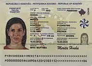 ![]() The information page of a contemporary Kosovar biometric passport | |