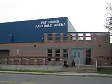On June 9, 2005, the city of Hamilton, Ontario, honoured Quinn at a special ceremony at Parkdale Arena, on the corner of Main Street East and Parkdale Avenue North, where the arena was officially renamed the Pat Quinn Parkdale Arena.[40] On June 8, 2006, Quinn returned to his hometown in Hamilton to accept an honorary Doctor of Laws degree from McMaster University. He addressed the convocation of Social Sciences graduates, saying that "education is a toolbox to make career changes. It is good advice for you to follow your dreams, listen to your heart and obey your passion".[41]