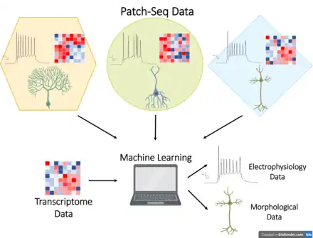 - Compilation and integration of multimodal cell type databases: Patch-seq has been used to integrate neuron functional characteristics to the large transcriptional databases from single cell RNA-seq studies. Patch-seq can provide electrophysiological and morphological data, with morphology being less common due to the difficulty in achieving high quality standards.[31] Integration of the multimodal data is necessary as correct labeling of cell type is unobtainable from just one data type. Previous research has shown that transcriptomically similar neurons can have different morpho-electrical characteristics.[56]