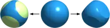 Patchy particles are micron- or nanoscale colloidal particles that are anisotropically patterned, either by modification of the particle surface chemistry ("enthalpic patches"),[1] through particle shape ("entropic patches"),[2] or both.[3] The particles have a repulsive core and highly interactive surfaces that allow for this assembly.[2] The placement of these patches on the surface of a particle promotes bonding with patches on other particles. Patchy particles are used as a shorthand for modelling anisotropic colloids,[1] proteins [4] and water[5] and for designing approaches to nanoparticle synthesis.[6] Patchy particles range in valency from two (Janus particles) or higher.[7] Patchy particles of valency three or more experience liquid-liquid phase separation.[8][9] Some phase diagrams of patchy particles do not follow the law of rectilinear diameters. [8]