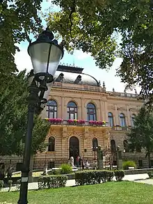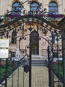 Construction of the palace was chosen to be in the style of Italian palaces, and the project was entrusted to contractors Peklo Bela and Karlo Lerer. The Royal Chapel the story above the main entrance was painted by Uroš Predić, and is covered by a hemisphere dome and is topped with a Lantern. The basis of the palace is in the form of the Cyrillic letter S, with the porte-cochère in the middle. The main facade has a forward side with Rizal emphasized in the level of the first-floor columns, pilasters, and the amount of columns is symbolic also of the amount of Attica architrave triangular ends, with the central Rizal highlighted with three windows that are bigger than others, and a terrace and front entrance where the stairs to the side of stone sculptures set of two lions. In total, there is a series of seventeen window openings with semicircular endings. The windows gives rhythm and uniformity, and alongside shallow pilasters with Ionic consoles and rails under the window of mass, gives cheerfulness. The central rizal is highlighted on the roofs top observation post. The Patriarchal Court is not only the historic administrative seat of the Serbian Orthodox Church, but also houses the Church Museum with treasures such as stored valuables, works of art, icons, portraits of the major metropolitan and church dignitaries, different objects of applied arts and a library of rare valuable manuscripts and old printed books. Within the palace, a treasury is open to the public with a permanent display of objects from the eighteenth and nineteenth century from the destroyed churches in Bosnia and Croatia. The complex is surrounded by a high fence, combining bricks and cast iron.