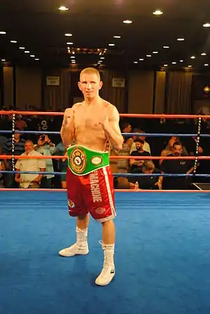 ![]() NABF Middleweight champion Patrick Majewski in the ring at Bally's Atlantic City, photo by sports writer Robert Brizel | |
