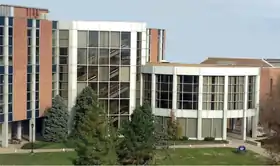 In 1962, across Grand Boulevard from the University 22 acres were purchased to accommodate Busch Student Center, sports fields, a large classroom building, and a three-building science complex with a large hall under its courtyard. In 1969 an SLU campus was opened in Madrid.[9]