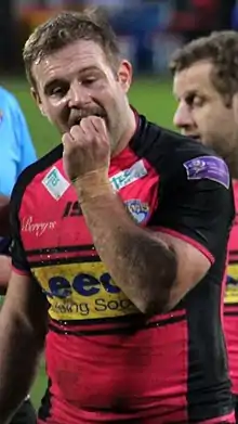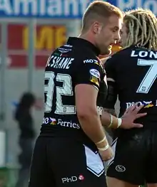 McShane was ever-present for Castleford in the 2016 season, appearing in every game.[7] He was an integral part of the 2017 squad that won the League Leaders' Shield and he played in the 2017 Super League Grand Final defeat by Leeds at Old Trafford.[15][16][17] He was named Castleford Tigers' 3rd Place 2017 Player of the Year.[18]