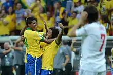 Paulinho was selected by Luiz Felipe Scolari for the 23-man Brazil squad for the 2013 FIFA Confederations Cup held in his home country.[46] In Brazil's final warm-up match for the competition against England at the Maracanã on 2 June 2013, Paulinho volleyed home Lucas Moura's cross to level the game late on at 2–2; the sides would finish level on this same scoreline.[47] In the opening group match on 15 June against Japan, Paulinho scored Brazil's second goal in a 3–0 victory.[48] In the semi-final round against Uruguay on 26 June, Paulinho netted in the 86th minute to give Brazil a 2–1 win and book the host country a spot in the final.[49] In the final, Brazil outclassed Spain, beating the World and two-time defending European champions by a score of 3–0. For his efforts throughout the tournament, Paulinho received the Bronze Ball as the competition's third best player.[50]
