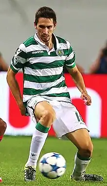 On 19 May 2014, Oliveira signed a five-year deal with Sporting CP of the same league.[5] He appeared in 40 competitive games in his first year and scored three goals,[6][7][8] helping to a third-place finish and subsequent qualification for the UEFA Champions League; he made his debut in the competition on 30 September 2014, coming on as a 64th-minute substitute for Maurício in a 0–1 group stage home loss to Chelsea.[9] The following 22 March, he was sent off in the 4–1 win over his previous club also at the Estádio José Alvalade.[10]