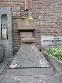 Jasienica died from cancer[10] on 19 August 1970 in Warsaw. Some publicists later speculated to what extent his death was caused by "hounding from the party establishment".[14] He is buried in Warsaw's Powązki Cemetery.[2] His funeral was attended by many dissidents and became a political manifestation; Adam Michnik recalls seeing Antoni Słonimski, Stefan Kisielewski, Stanisław Stomma, Jerzy Andrzejewski, Jan Józef Lipski and Władysław Bartoszewski.[10] Bohdan Cywiński read a letter from Antoni Gołubiew.[2][10]