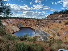 Before the arrival of Europeans, the Peak Hill area was part of the Wiradjuri people's lands.[3] In 1817, the explorer John Oxley and his party were the first Europeans in the region.[3] In 1889, Gold was discovered in the area, and later that year Peak Hill was gazetted in November 1889.[4] The Post office opened on 7 November 1889, and the Bureau of Meteorology's weather station began in 1965.[5][6] The first public wheat silo built in Australia was constructed at Peak Hill in 1918 after government surveys indicated the district had great potential as a wheat-producing region.[7][8]