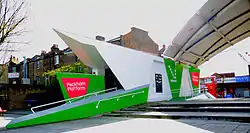 Peckham Platform was founded in 2009 as an initiative developed by nearby Camberwell College of Arts to commission location-specific projects by contemporary artists in collaboration with local youth groups.[2] The first brand new, purpose-built, public-funded art gallery in South London since 1891, the building was designed by the architects Penson Group and is located on Peckham Square in the Peckham district of South London.[3] Funders for the new venture, originally called 'Peckham Space', included Arts Council England[4] and Southwark Council, as well as UAL.[5] In 2013, the gallery became independent from Camberwell College of Arts, changing its name and, through the formation of a board of trustees, established itself as a charitable institution.[6] Peckham Platform's founding director is Emily Druiff, whose earlier career as a curator and artist was focussed on the field of socially engaged art in London.[7]