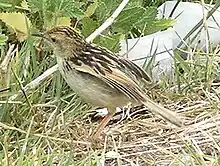 The pectoral-patch cisticola (Cisticola brunnescens) is a species of bird in the family Cisticolidae. It is found in Cameroon, Republic of the Congo, Democratic Republic of the Congo, Eritrea, Ethiopia, Gabon, Kenya, Somalia and Tanzania. Its natural habitats are damp or wet areas in upland grassland.[2]