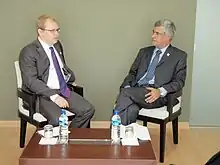 Former Foreign Minister Pedro Vaz (right) meeting with Estonian Foreign Minister Urmas Paet.