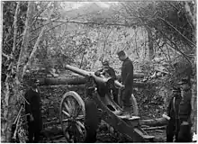 Large-caliber field guns often required extensive site preparation because the guns had to be broken down into multiple loads light enough to be towed by a horse team or the few traction engines of the time and then reassembled before use. Building a new gun could address the problem of disassembling, transporting, and reassembling a large gun, but it didn't necessarily address how to convert existing heavy weapons to make them more mobile. Rail transport proved to be the most practical solution because the problems of heavy weight, lack of mobility, and reduced setup time were addressed.[2]