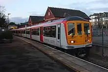 Penarth railway station is the railway station serving the town of Penarth in the Vale of Glamorgan, South Wales. It is the terminus of Network Rail's Penarth branch running from Cogan Junction to Penarth station, 1 mile 12 chains (1.15 mi; 1.9 km) from the junction[1] and 2 miles 67 chains (2.84 mi; 4.6 km) south of Cardiff Central station. The Penarth branch ran from Cogan Junction to Biglis Junction, a rail mileage of 5 miles 65 chains (5.81 mi; 9.4 km) and was officially closed beyond Penarth after the last passenger train ran on Saturday 4 May 1968.