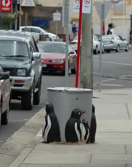![]() Penguin-themed rubbish bin in the town | |