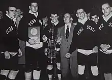 The Penn State wrestling team poses with the 1953 NCAA National Championship trophy