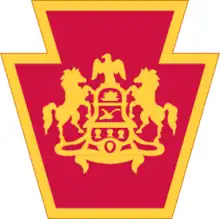 In 1879, the Pennsylvania National Guard established a division, organized in a fashion not specifically approved by the War Department.[2] The keystone was prescribed as the designated symbol of the National Guard of Pennsylvania on 27 August 1879.