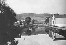 The Lock Haven Dam (also known as the Dunnstown Dam), was built in the 19th century primarily to provide water to the West Branch Canal.[8] Canal boats crossed the pool behind the dam using a cable ferry between Lock No. 35 on the Lock Haven (Bald Eagle Crosscut Canal) side of the river and Lock No. 34 on the Lockport (West Branch Canal) side, about 2,000 feet (610 m) downriver from the Jay Street Bridge.[8]
