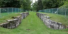 Remnants of the canal exist along the West Branch Susquehanna River between Northumberland and Lock Haven. Canal walls made of stone still stand near Muncy, while other canal and lock remnants are preserved near Lock Haven.[10] Archaeological work and restoration began in 2005 at the Muncy Canal Heritage Park and Nature Trail, 11 acres (4.5 ha) including remains of a towpath, a lock, a canal wall, and a lock tender's house.[11] Part of the Bald Eagle Crosscut Canal still flows along Bald Eagle Creek through Flemington. Lock No. 32 has been preserved in Jersey Shore.