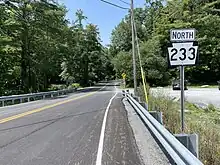 When routes were legislated in Pennsylvania in 1911, what is now PA 233 was designated as part of Legislative Route 191 between Dickinson and Green Park.[7] PA 233 was designated in 1928 to run from US 11 (Walnut Bottom Road) in Dickinson north to PA 33 (now PA 34) in Dromgold, following its current alignment north to Landisburg before it continued to the east. Upon designation, the route was paved between Dickinson and south of Doubling Gap while the remainder north to Dromgold was unpaved. In 1928, the road between Landisburg and Green Park was designated as part of PA 74, which was unpaved. At this time, the road between Mont Alto and US 30 was an unnumbered paved road.[8] By 1930, the section of PA 74 between Landisburg and Green Park was paved. By this time, the roadway between Pine Grove Furnace and Dickinson was an unnumbered unpaved road.[9] PA 233 was extended south from Dickinson to PA 997 in Mont Alto in 1937.[10][11] In 1937, PA 233 was realigned at Landisburg to head north to PA 17 in Ickesburg, following its current alignment to Green Park before continuing north to Ickesburg. The realigned PA 233 replaced a section of PA 74 between Landisburg and Ickesburg while the former alignment of PA 233 between Landisburg and Dromgold became part of an extended PA 850.[12] The entire length of the route was paved in the 1930s with the exception of a portion to the north of Doubling Gap.[11] In the 1940s, the north end of PA 233 was cut back to its current location at PA 274 in Green Park, with the section immediately to the north of PA 274 becoming unnumbered Green Park Road and the remainder of the road between north of Green Park and Ickesburg becoming a northern extension of PA 74. The section of the route north of Doubling Gap was paved and straightened in the 1940s.[13]
