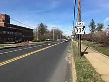 Pennsylvania Route 332 (PA 332) is a state highway in the U.S. state of Pennsylvania. The route runs 17.5 miles (28.2 km) from PA 263 in Hatboro, Montgomery County, east to PA 32 in Yardley, Bucks County. PA 332 runs through suburban areas to the north of Philadelphia, serving Warminster, Ivyland, Richboro, and Newtown. The route is two lanes wide most of its length, with the bypass around Newtown a four-lane divided highway. PA 332 intersects PA 132 in Warminster, PA 232 in Richboro, PA 413 and PA 532 in Newtown (all three run concurrently on the Newtown Bypass), and Interstate 295 (I-295) in Lower Makefield Township.