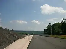 The Marshalls Creek Bypass was redesigned as a new project with a new park and ride at the Pocono Bazaar to the northeast of Marshalls Creek with an extended Oak Grove Drive, which would run around the back of the Bazaar and come to a new intersection with US 209 and a new bypass of the village of Marshalls Creek of US 209 only.[14] Construction on the park and ride began in 2009, marking the beginning of the third and final phase of the project.[15] Construction on the US 209 bypass was slated for Spring 2010, with a 2.5 year span of completion at the cost of $20 million (2009 USD).[16] The bypass opened on June 11, 2012, and PA 402's southern terminus became US 209 Bus. as US 209 was rerouted onto the new bypass.[17]