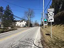 Pennsylvania Route 52 (PA 52) is a 11.8-mile-long (19.0 km) state highway located in southeast Pennsylvania. The southern terminus of the route is at the Pennsylvania-Delaware state line near Kennett Square, where the road continues as Delaware Route 52 (DE 52). The northern terminus is at U.S. Route 322 Business (US 322 Bus.) in West Chester. Near the Kennett Township community of Longwood, it has about a 1-mile (1.6 km) wrong-way concurrency with US 1. PA 52 passes through suburban and rural areas along its route.