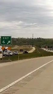 Ground on the first leg of the Southern Beltway, also known as the Findlay Connector, was broken on November 12, 2003, connecting what was then PA 60 to US 22. The Connector was delayed by the discovery of state endangered short eared owls nesting at the Imperial Grasslands in the path of construction.[14] The Findlay Connector received its name because it served as a connector from the Weirton, West Virginia/Steubenville, Ohio area to the Pittsburgh International Airport through Findlay Township. The connector reduced the average commute time between these places by at least 15 minutes.[15] The Findlay Connector opened on October 11, 2006.[16] Before construction of the Findlay Connector, residents from the Weirton/Steubenville area had to travel down US 22 all the way down to PA 60 in heavily congested Robinson Township, then take then-PA 60 north to the Airport. In 2009, PA 60 north of the interchange was rebranded as an extension of I-376.[17] Due to funding limitations, as well as emphasis on connecting the two fragmented sections of the Mon–Fayette Expressway between Uniontown and Brownsville, the Findlay Connector would be the only section of the Southern Beltway to be built for a decade.