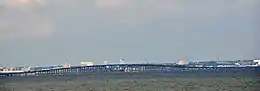 FDOT announced in January 2010, near the end of the bridge's 50-year design life, that the bridge was structurally deficient and would have to be replaced within six years.[5] As of 2011, a study is underway to determine the "feasibility, location, and conceptual design" of a replacement bridge.[6] As of February 2013, plans have begun to replace the bridge with construction beginning within two years, at a cost of $595.6 million, on a course slightly to the west of the existing bridge. The new bridge, like the previous one, will not charge a toll.[7] As of February 2020, construction of the new westbound bridge was completed with only the pedestrian portion to be completed with the old bridge being dismantled to make way for the parallel bridge to begin construction.