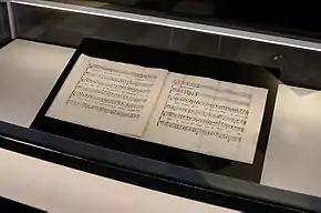 ![]() Display of the score, which was believed lost, at the Czech Museum of Music in Prague (2016) | |