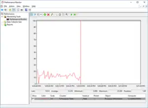 The name displayed inside the MMC plug-in was changed back to "Performance Monitor" in Windows Vista, although it was also bundled with a Reliability Monitor and with a new performance summary feature called Resource Overview.[10][11] In Windows 7, the resource overview feature was split to a stand-alone Resource Monitor application, with the landing page for the Performance Monitor in Windows 7 containing a pointer to the (new) Resource Monitor; Windows 7 also moved the Reliability Monitor to the Action Center. A new feature added to the Performance Monitor in Windows Vista is Data Collector Set, which allows sets of accounting parameters to be easily manipulated as a group.[12] Performance Monitor plots system CPU activity, and offers an ability to add counters as a method of plotting performance different from the ability to view CPU activity within Task Manager. Various integrated counters are available within the program, and the tool also offers the option to import them. The tool allows for selective instances to be monitored when selecting counters, and offers a description of each counter. Additionally, counters can be highlighted if multiple are selected. Also included are various options for monitoring, Chart, Log, and Report options. Chart allows for the monitoring of performance in graph form, and within this the Alert feature can be used to alert for results within set parameters. Report allows for the performance graph to be transitioning into a reporting format with all numbers instead of a graph. The Log option gives the ability to monitor performance and save results to the computer.[13] Through data collector sets and reports, the Performance Monitor provides a mechanism that allows for logging information and events within the system. [14]