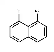 Owing to the rigidity of the naphthalene skeleton, these substituents on the 1- and 8-positions are constrained to be relatively close 2.5 Å, which is within the van der Waals radius for many atoms. In contrast, ortho-substituents pendant from a benzene ring are separated by about 3.3 Å.[1]