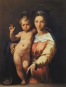 Perino was born near Florence.[1] His father ruined himself by gambling, and became a soldier in the invading army of Charles VIII. His mother died when he was but two months old; but shortly afterwards he was taken up by his father's second wife. Perino was first apprenticed to a druggist, but soon passed into the hands of a mediocre painter, Andrea de' Ceri,[2] and when eleven years of age, of Ridolfo Ghirlandaio.