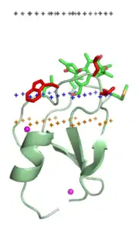 19. Ben-Tal N, Honig B, Miller C, McLaughlin S (October 1997). "Electrostatic binding of proteins to membranes. Theoretical predictions and experimental results with charybdotoxin and phospholipid vesicles". Biophysical Journal. 73 (4): 1717–1727. Bibcode:1997BpJ....73.1717B. doi:10.1016/S0006-3495(97)78203-1. PMC 1181073. PMID 9336168.