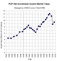 - 1 2 3 4 5 6 7 "PUF Timeline - Home". The University of Texas Investment Management Company. 2008. Retrieved 2009-02-08.