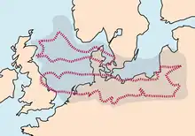 The European Permian Basin is a thick sequence of sedimentary rocks deposited in a large sedimentary basin during the Permian period (from 298.9 to 251.9 million years ago) in Northern Europe. The basin underlies northern Poland, northern Germany, Denmark, the Netherlands, a significant portion of the North Sea to the east coast of England and up to Scotland.