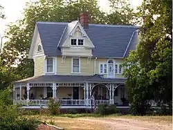 Person–McGhee Farm is a historic farm complex located at 5631 U.S. Highway 1 in Franklinton, Franklin County, North Carolina, about 4 miles (6 kilometers) north of town. The earliest section of the house was built sometime between 1770 and 1820, and is a three-bay, two-story frame dwelling over a stone-walled cellar. It has double shouldered brick end chimneys. In the 1890s, a large 2 1/2-story Queen Anne / Colonial Revival style section was added to the original Federal period dwelling. Also on the property are the contributing tenant house (1860s-1870s), a water tower, smokehouse, cattle barn, three log tobacco barns, and several sheds.[2]