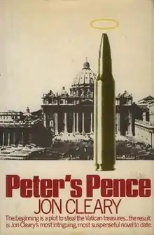 Peter's Pence is a 1974 novel[1] by the Australian author Jon Cleary about an IRA plot to steal treasure from the Vatican with the help of an Irish-American journalist. They kidnap the Pope instead.[2]
