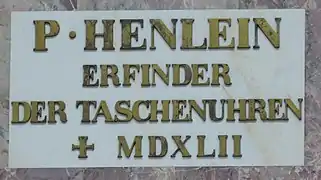 Henlein died in August 1542 and was buried at the Katharinenkirche, Nuremberg.[12]