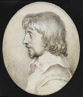 He was even more eminent in miniature painting than his father, and is specially remarkable for a series of copies in watercolor he made after celebrated pictures by old masters. Most of these were done by the desire of the king, and seven of them still remain at Windsor Castle. A great many of Oliver's works were purchased by Charles II from his widow; several of his drawings are in existence, and a leaf from his pocket-book in the collection of the earl of Derby. His most important work is the group of the three grandsons of Anthony Browne, 1st Viscount Montague with their servant, now belonging to the marquess of Exeter; and there are fine miniatures by him at Welbeck Abbey, Montagu House, Sherborne Castle, Minley Manor, Belvoir Castle and in the private collection of Queen Wilhelmina.[1]