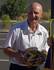 Peter Maxwell John Sterling OAM (born 16 June 1960) nicknamed Sterlo, is an Australian former rugby league commentator, television personality and player. He was one of the all-time great halfbacks and a major contributor to Parramatta Eels' dominance of the New South Wales Rugby League premiership in the 1980s. Sterling played eighteen Tests for the Australian national team between 1982 and 1988. He also played in thirteen State of Origins for New South Wales, winning man of the match on four occasions (one of them being the 1987 exhibition match played in the USA). Sterling played in four premiership-winning sides with Parramatta in 1981–1983 and 1986 and has been inducted into the Australian Rugby League Hall of Fame. His time spent playing for English club Hull F.C. also earned him membership in their hall of fame.