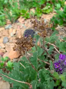 Phacelia lyalii is known to be pollinated by several Bombus species. It closely resembles Phacelia sericea with which it co-occurs, but can be distinguished by its relatively shallowly-cleft, pinnately-lobed leaves.