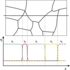 In multiphase-field models, microstructure is described by set of order parameters, each of which is related to a specific phase or crystallographic orientation. This model is mostly used for solid-state phase transformations where multiple grains evolve (e.g. grain growth, recrystallization or first-order transformation like austenite to ferrite in ferrous alloys). Besides allowing the description of multiple grains in a microstructure, multiphase-field models especially allow for consideration of multiple thermodynamic phases occurring e.g. in technical alloy grades.[22]