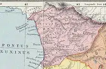 Phasis was probably a mixed Hellenic–"barbarian" city,[3] in which the Greek settlers coexisted peacefully with the natives.[5] It seems to have been a vital component of the presumed trade route from India to the Black Sea, attested by the Classical authors Strabo and Pliny.[6]