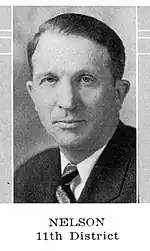 Nelson was re-elected in 1934 in a four-way general election and went on to serve as a delegate to the 1936 Republican National Convention. However, with the emergence of the Wisconsin Progressive Party after their formal schism from the Republican Party, Nelson began associating with the Progressives in the Senate, and worked as a floor leader for the Progressive caucus in the 1937 session. He went on to seek re-election in 1938 on the Progressive Party ticket, but faced another difficult primary election against two incumbent Progressive state representatives—Michael H. Hall and Harry Bergren. He managed to prevail with 43% of the vote and went on to win the 1938 general election with 43% in another four-way race.[5] He continued to serve as Progressive Floor Leader for the remainder of his time in the Senate.