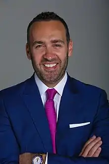 Khalil, Philippe's father, is a long-time supporter of the Phalangist party. Philippe is an outspoken critic of Lebanese political stalemate;[15] he gained the support of the Aounist elite, namely President Aoun and the president of the Free Patriotic Movement and then-Minister of foreign affairs and Emigrants Gebran Bassil with whom he developed close ties. In January 2020 Ziade was nominated for Minister of Energy and Water in the cabinet of then-prime minister-designate Hassan Diab; he maintains that he was nominated by Sayed Fenianos and a member of the Harvard University board who is in communication with Diab.[16] The nomination of Ziade to the office is based on his experience with renewable and sustainable energy; his reform agenda centered on cutting energy waste and shifting from fossil fuel energy to self-powered households and businesses using new renewable energy technology such as Tesla's Powerwall.[14] During a televised interview the influential Cardinal Bechara Boutros al-Rahi, the Maronite Patriarch of Antioch, and head of the Maronite Church openly supported the nomination of Philippe.[14] Ziade declined the nomination following the liquidation of Qasem Soleimani, a high-ranking Iranian military commander, which according to him would impose regional political interference in the internal Lebanese politics while he was expecting to be part of Diab's technocratic cabinet. Ziade was also the subject of a media smearing campaign involving the circulation of his photos in a state of inebriety during a bachelor party when he was 22 years of age.[16][17][18] He issued a press release announcing that his refusal of the cabinet position was on grounds not related to the leaked photos.[19] Ziade was unapologetic during a televised interview with the Lebanese journalist Marcel Ghanem and justified his behavior as a normal aspect of integration in occidental culture.[16][20]