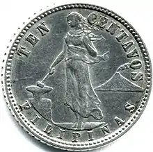- ↑ http://worldcoingallery.com/countries/display.php?image=nmc2/142-148&desc=Philippines km148 10 Centimos (1880-1885)&query=Philippines