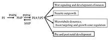 Although an extensive study to elucidate the role of PI(4,5)P2 and PIP5 kinase has been focused on many cellular processes such as vesicle trafficking, cell movement and cytoskeletal assembly, a very few studies have been reported for their role in neuronal development. PIP5K is highly expressed kinase in the nervous system of several organisms and plays important role in neuronal development including embryogenesis and post-natal neural development.[7] The disruption of PIP5KIγ leads to broad developmental and cellular defects in mice indicating PIP5KIγ plays critical role for embryogenesis and adulthood of mice and its disruption causes fatality for postnatal life [[8]]. The embryo without PIP5KIγ has extensive prenatal lethality during embryonic development. The disruption of PIP5KIγ also causes neural tube closure defects caused by decreased PI(4,5)P2 level.[7][9] In contrast to this, mice lacking PIPKIα or PIPKIβ have major impact during adulthood but no effect in prenatal embryo, Even in the absence of both PIPKIα and PIPKIβ, a single allele of PIPKIγ, can support normal the adulthood functioning, indicating PIPKIγ and PIPKIα have partially overlapping function during embryogenesis.[8][9] In different experiments, the role of PIP5K in neurite outgrowth has been analyzed by knocking down PIP5Kα. The Nerve Growth Factor (NGF) induced neurite outgrowth was more obvious in knock down cells than in control cells. In contrary, the over-expression of PIP5Ka in to a PIP5Ka Knock down cells abrogated neurite outgrowth showing PIP5K acts as a negative regulator of NGF-induced neurite outgrowth through inhibiting the PI3K/ AKT signaling pathway in PC12 cells.[10]