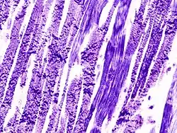 PTAH is ideal for demonstrating striated muscle fibers and mitochondria, often without a counterstain. As such, it is used to identify contraction bands, as seen in contraction band necrosis.[1]